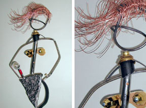 | Victoria Wind swept hair, designer watch, fully adjustable neck and head, realistic pizza slice. Victoria is the third in my new whimsical "Slice" series. Her sister "Dominique" sold very quickly. Victoria is available and on display at the Landing Gallery. Each individual strand of hair has been formed by hand. Her "Slice" has to be viewed in person to be appreciated. She can be posed in many ways. Her body rotates on the pizza base and her head can be rotated and tilted up and down to be able to capture the look you will most enjoy. Copyright 2005 Craig Brown |