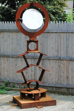 | Moon Beams The polished "Moon" rotates on its axle with the breeze or a gentle push. One side is swirled to resemble the surface of the moon as viewed through a telescope. The reverse is polished to create an image of the moon seen with the naked eye. The base is an eclectic combination of various elements welded together with an Asian infuence. "Moon Beams" is an original and very unique sculpture. "Moon Beams" has an aura that makes it difficult for the viewer to look away.... You are drawn in and find yourself relaxed and at the same time stimulated. Please contact us for an appointment to experience "Moon Beams" in our studio. Copyright 2004 Craig Brown |
